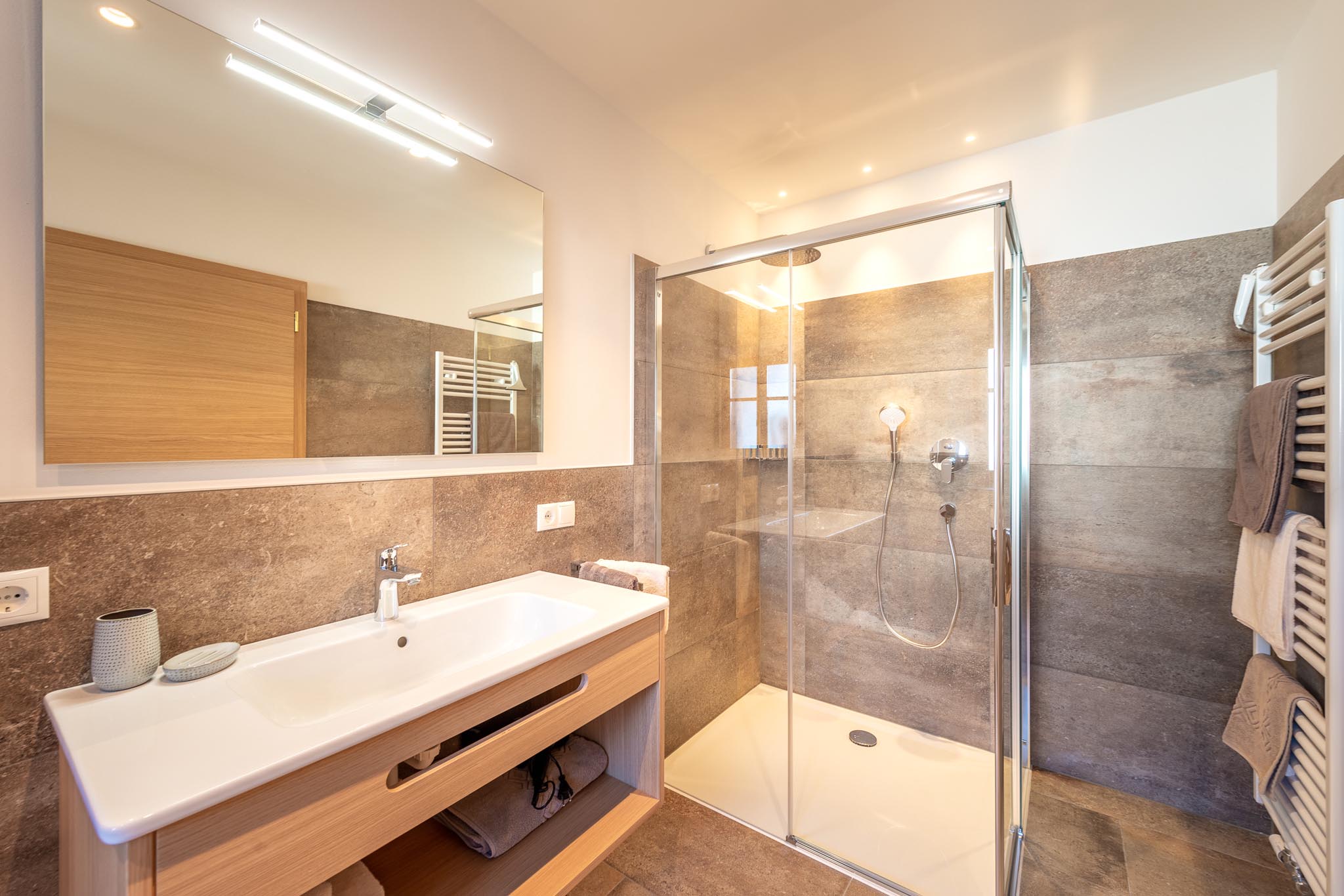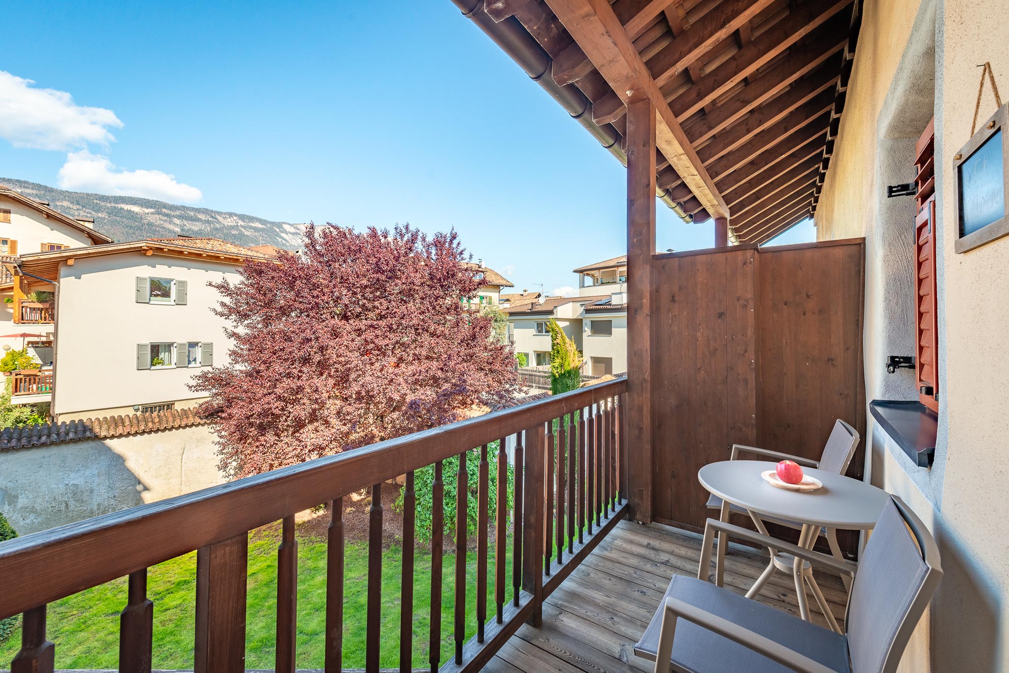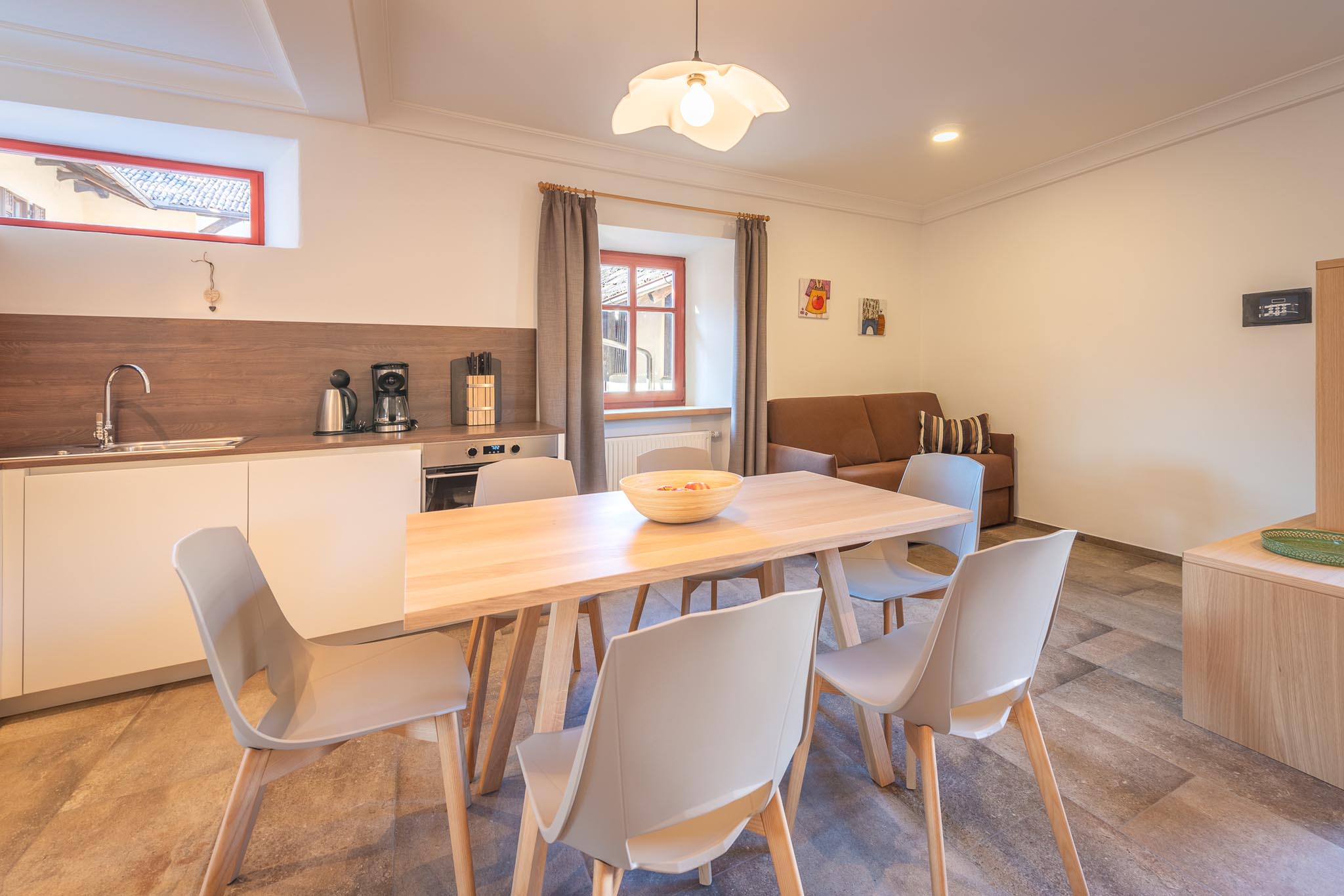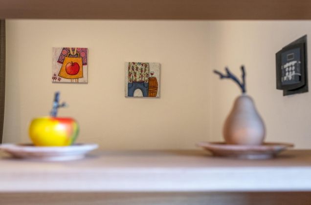Ausstattung: In der Ferienwohnung finden Sie eine voll ausgestattete Küche mit Geschirr, Glaskeramikkochfeld, Abspülmaschine, Kühlschrank mit Gefrierfach, Backrohr, Filterkaffeemaschine, italienische Mokka, Wasserkocher, Toaster, Radio usw. Im Wohnraum befinden sich eine ausziehbare Schlafcouch, Sat-Tv, Wlan und Safe. Das Appartement verfügt über 2 Schlafzimmer mit Doppelbett und Bettwäsche. In der Ferienwohnung sind 2 Badezimmer mit Waschbecken, Wc, Bidet, Dusche, Föhn und Handtüchern. Auf dem Balkon mit Westblick können Sie in einer gemütlichen Sitzecke die Nachmittags- und Abendsonne genießen. Zur Wohnung gehören ein privater Parkplatz, ein gemeinschaftlicher Garten (Sitz- und Liegeplätze, Gillmöglichkeiten, Spielplatz usw.), ein Aufenthaltsraum (mit einer Minibar und eigenen Hofprodukten, Büchern, Gesellschaftsspielen usw.) und ein Wäscheraum mit Waschmaschine, Trockner, Bügeleisen und Bügelbrett.