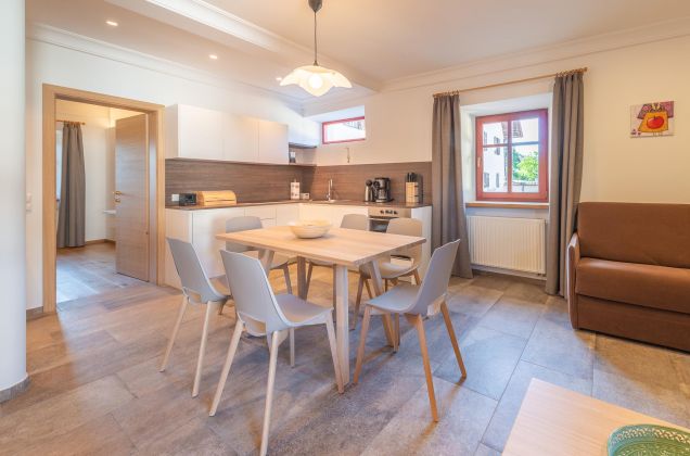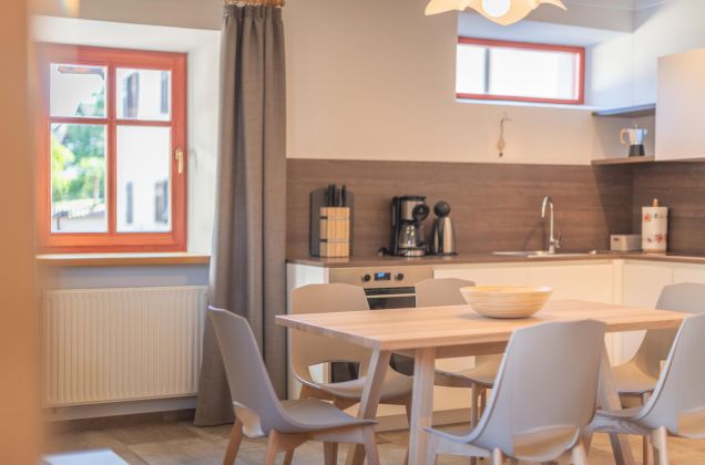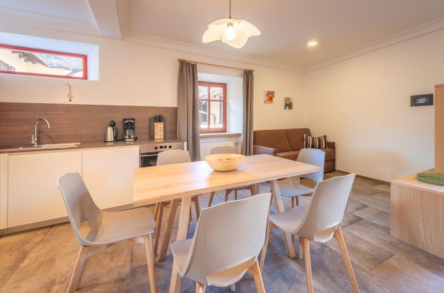 In unserem Stöckl 3 können Sie sich auf ein Wohlfühlen in alten Mauern mit modernem Flair freuen. Die Ferienwohnung verfügt über zwei Schlafzimmer mit zwei Bädern und einer Wohnküche. Ob vor 500 Jahren die Mägde und Knechte des Hofes auch so ansehnlich wie heute schliefen? Wenn die alten Mauern sprechen könnten, welche Geschichten würden sie uns wohl erzählen?